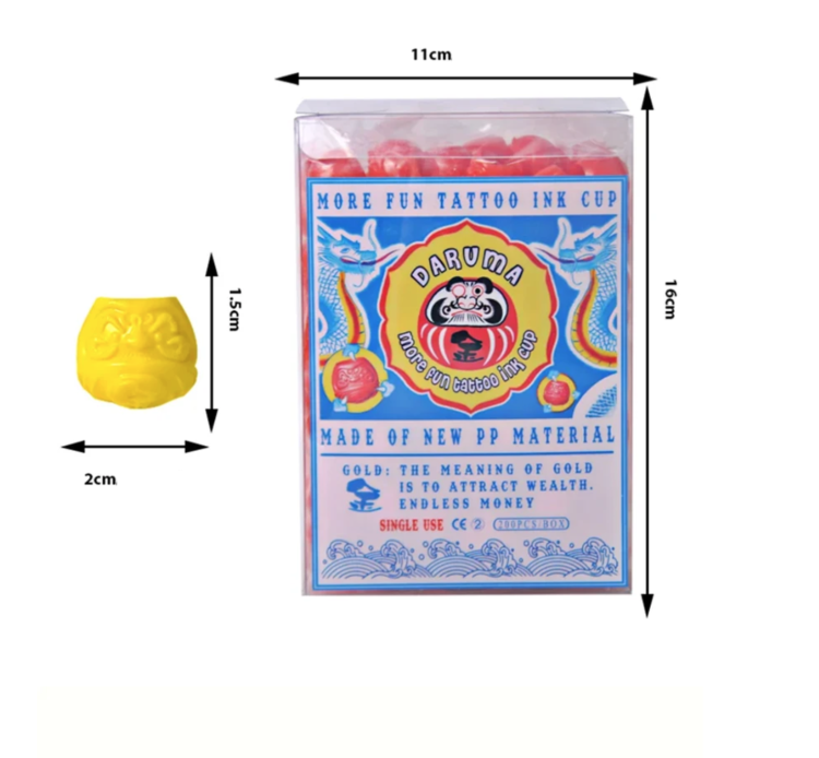 Die Daruma Tintenbecher sind ein originelles und praktisches Zubehör für den Alltag professioneller Tätowierer. Inspiriert von der japanischen Kultur, ziehen sie mit ihrem einzigartigen Design alle Blicke auf sich und erfüllen gleichzeitig höchste Anforderungen an Stabilität und Funktionalität – kompakt, standfest und ideal für präzises Arbeiten.